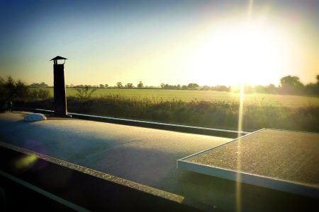 If the Cardinal and I are not cruising then I have two options. I can run the engine anyway to recharge the battery bank, or, which is more likely even in winter, I can just leave it to the solar panels on the roof to do all of the work. The Cardinal sports four solar panels and two separate control systems. One panel is just thirty watts and is dedicated to keeping just the engine starter battery happy. The other three panels total some four-hundred watts and they feed the main domestic bank of batteries. A few hours of even a mildly enthusiastic winter sun and they’ll do the job. In summer I can run everything all of the time, use the washing machine and I’m still throwing away solar power by lunchtime. In winter, if I exercise a certain economy – and I do – then it’s sort of touch and go, with the more dreary days requiring the engine to be started.