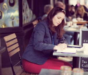 Writing in a London cafe