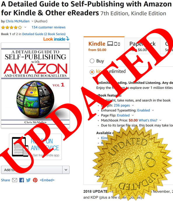 I also noticed a few other things that needed updating, like mention of the CreateSpace eStore option (which is no longer available) and changes to Kindle Unlimited.