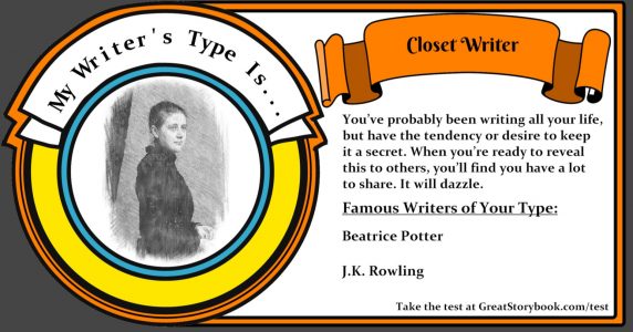 Lately, I found a personality test for writers on the ‘greatstorybook.com’ website. I read that there are many different types of writers and I was curious about what type I am.
