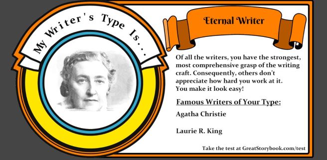 After replying to 31 questions the result told me, I am an ‘Eternal Writer’, just like Agatha Christie and Laurie R. King.