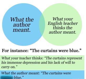In the joke, a Venn diagram of two circles—”What the author meant” and “What your English teacher thinks the author meant”—barely overlap. The joke is funny because it rings true for many.
